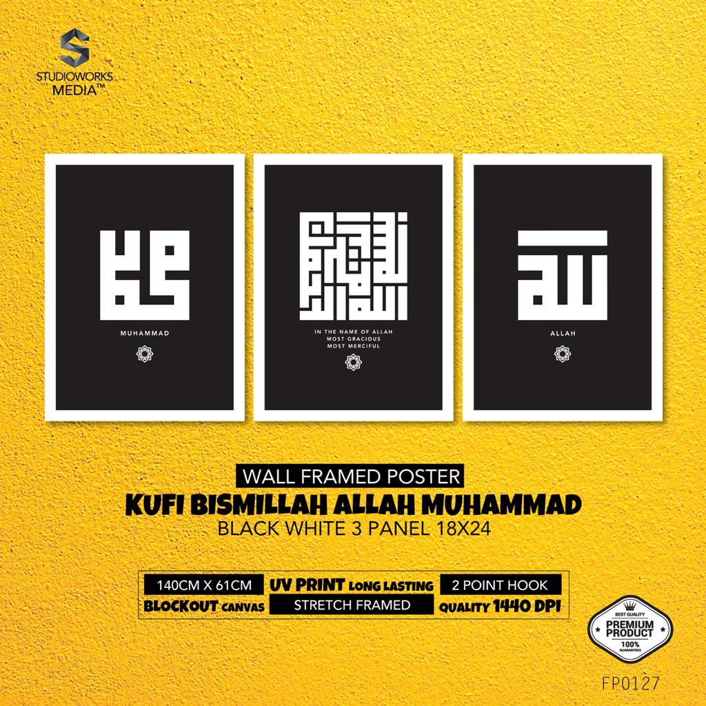 Frame Khat Kufi Bismillah Allah Muhammad 3 Panel 18x24 Ready Stock Shopee Singapore