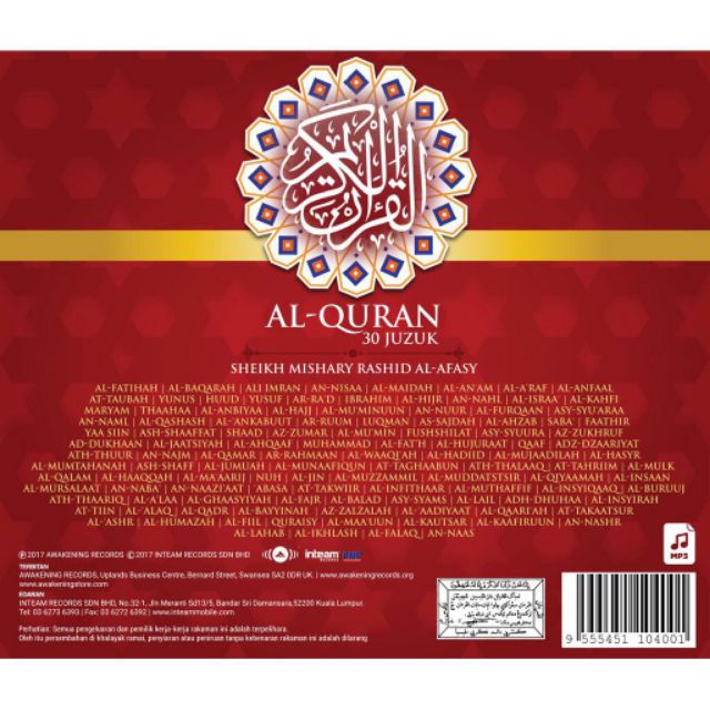 Sheikh Mishary Rashid Al Afasy Al Quran 30 Juzuk Mp3 Cd Shopee Malaysia