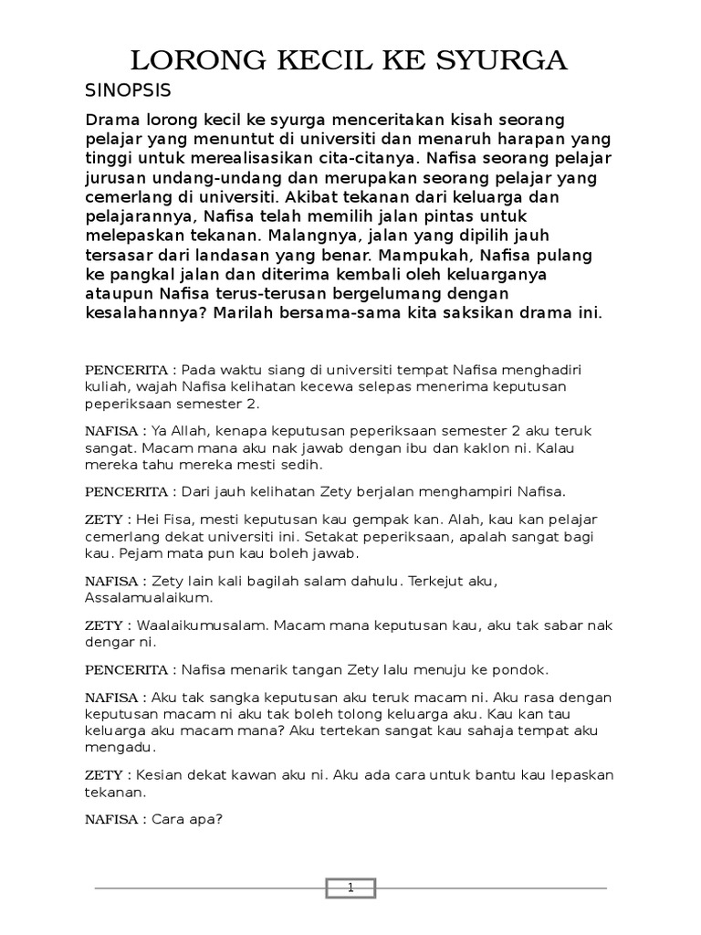 Lorong Kecil Ke Syurga Sinopsis