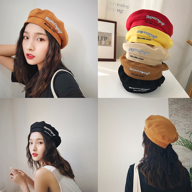 Hat Topi Beret Bahan Katun Wanita Fashion Korea Dengan Tali Belakang Shopee Indonesia