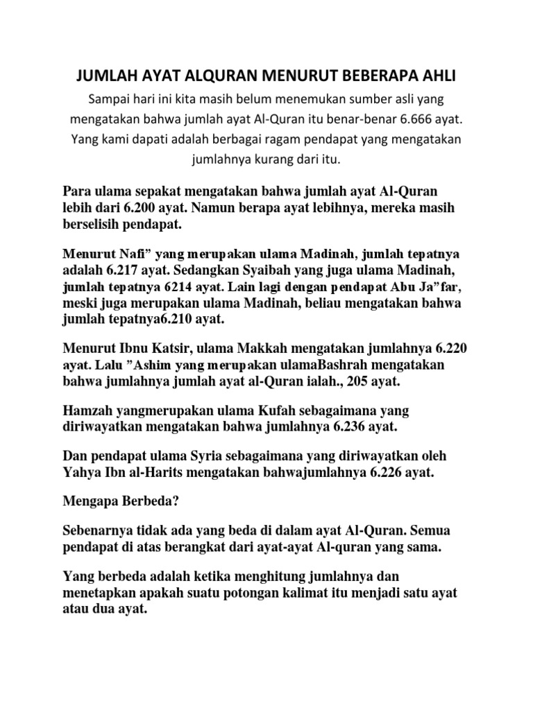 Jumlah Ayat Alquran Menurut Beberapa Ahli S