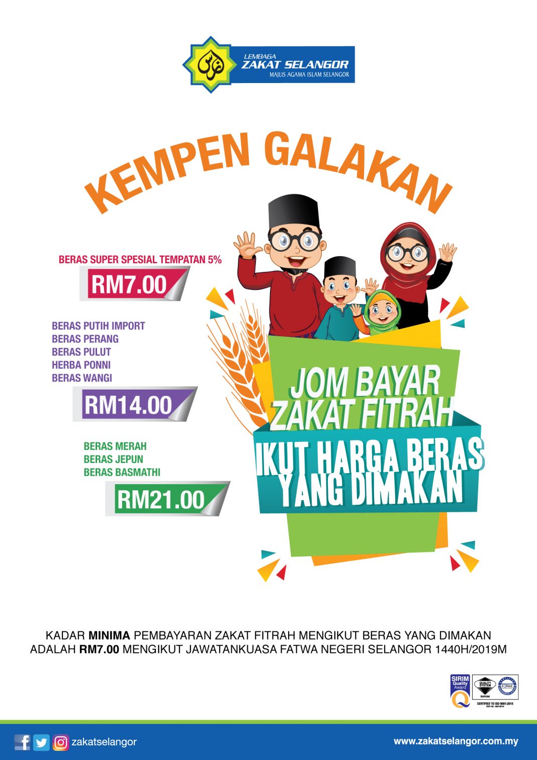 Bayaran Zakat Fitrah Mengikut Harga Beras Dimakan Lembaga Zakat Selangor