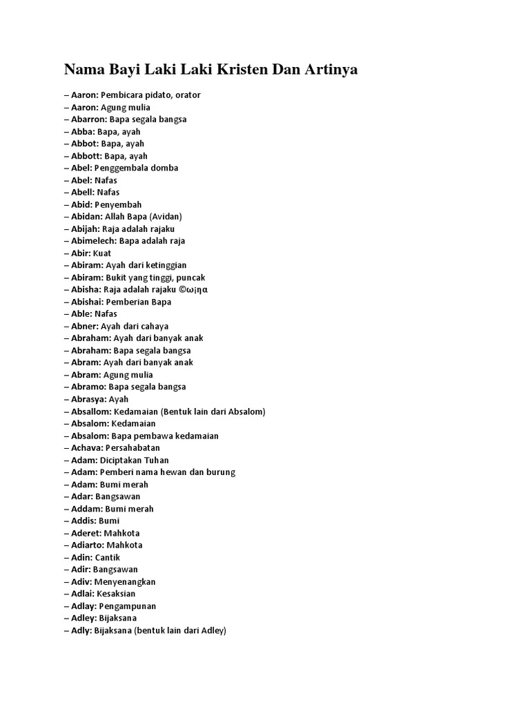 Nama Bayi Laki Laki Kristen Dan Artinya Docx