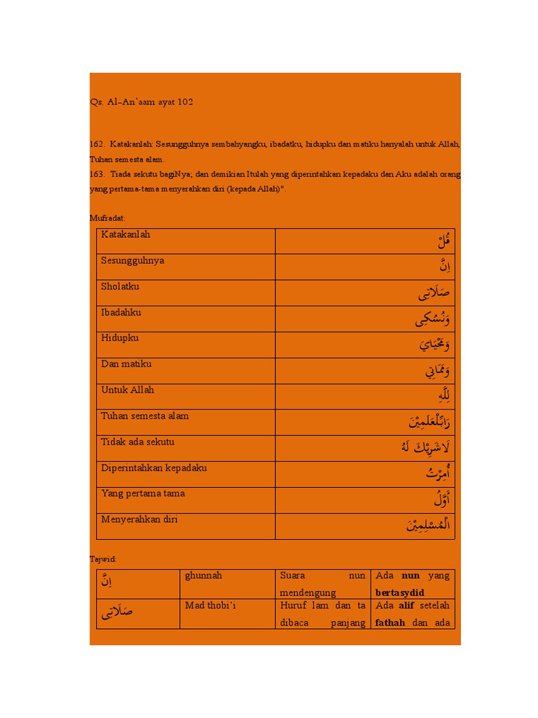 4 Kandungan Surat Al An Am Ayat 162 163 Tajwid Arti Perkata Muttaqin Id