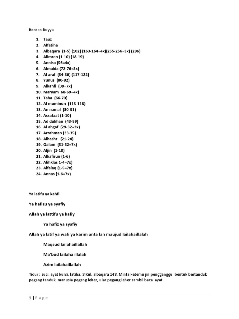 Bacaan Ruyya